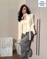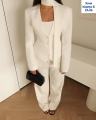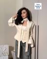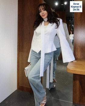 Красивый приталенный пиджак с интересным элементом в виде поясочка на шею Образ будет на все 100.