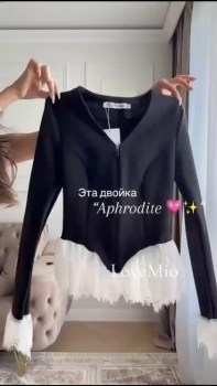 Уникальный женский комплект,стильная укороченная кофточка с гипюром на молнией, клещевые штаны.