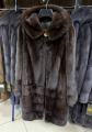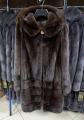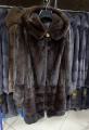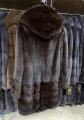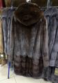 Шубка из меха европейской норки с капюшоном в цвете махагон.