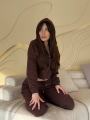 Швы в зоне талии и брюк по длине визуально подчеркивают красивый силуэт и делают его более стройным Трендовая укороченная длина кофты и брюки палаццо.