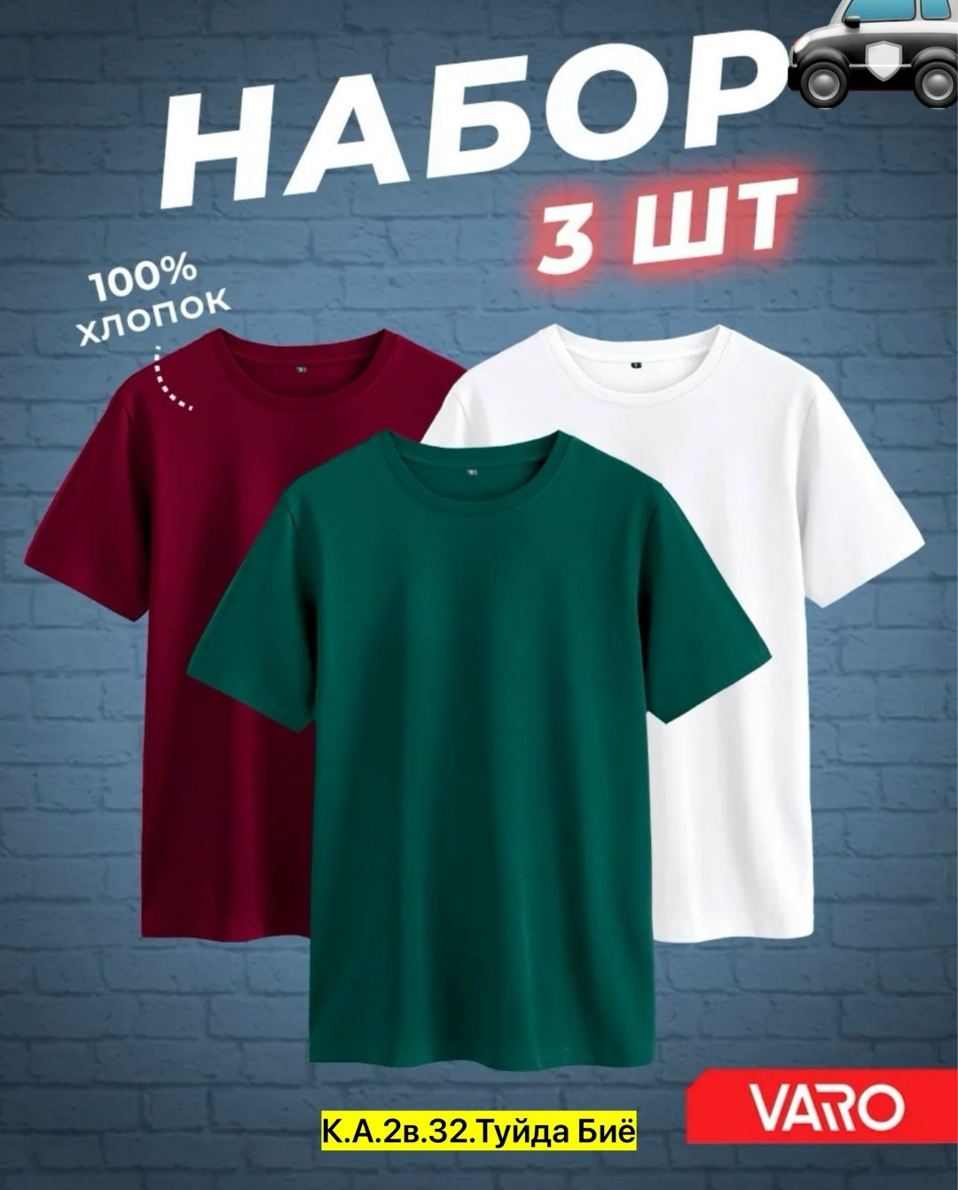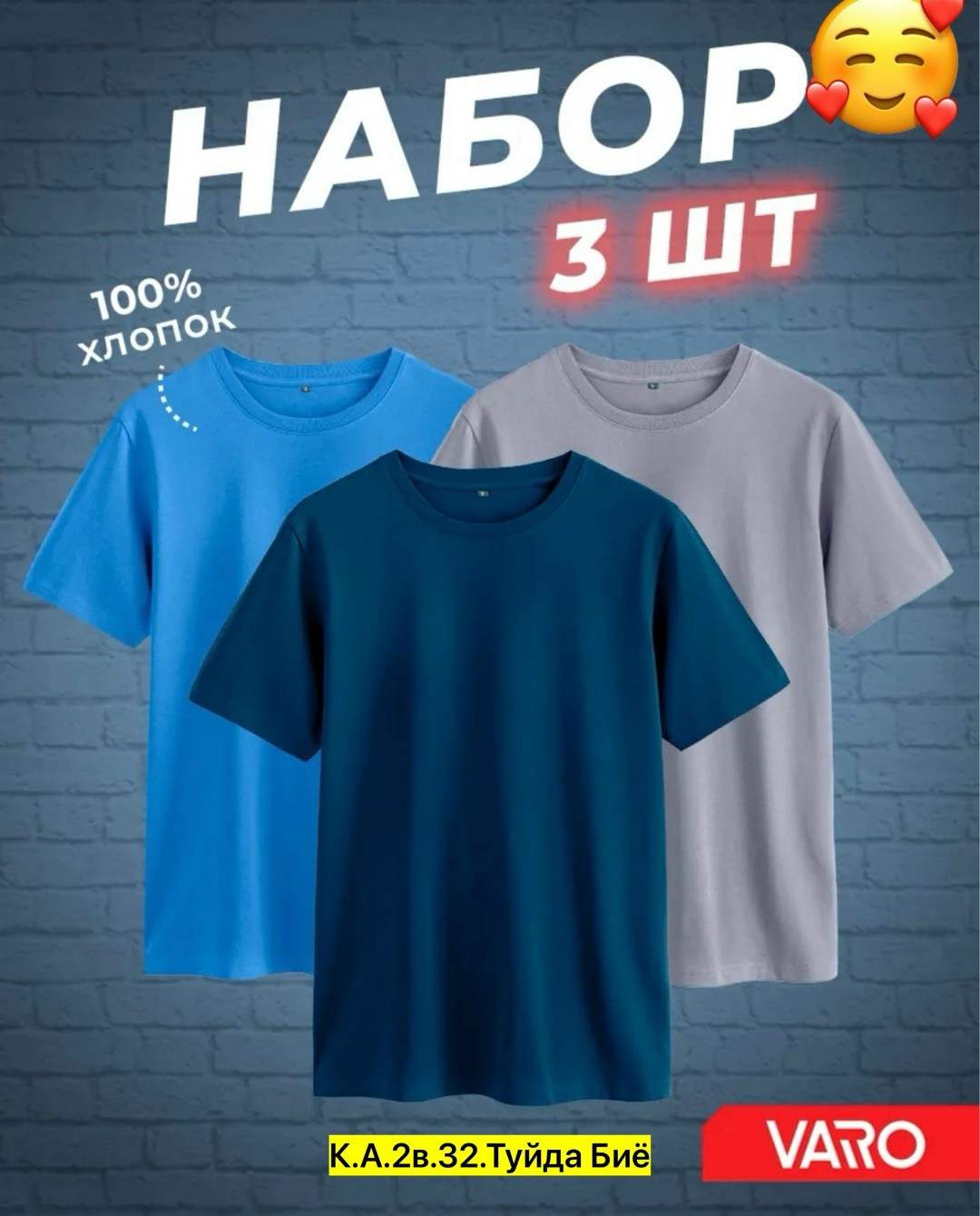 Набор футболок для мужчин, хлопок