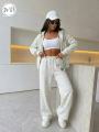 Уютный женский спортивный костюм свободного кроя из качественной тканьи-главный тренд сезона Его универсальные цвета легко впишутся в базовый гардероб, а удобный крой обеспечит идеальную посадку по фигуре Идт с кофтой на молнии и брюками палаццо на кулиске!.