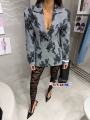 Эффектный приталенный жакет с акцентными плечами и кружевным рисунком делает талию тоньше и образ дороже.