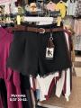 Получили трендовые шикарная шорты полностью с подкладкой рабочие карманы комплект в ремнем снизу с кружевом.