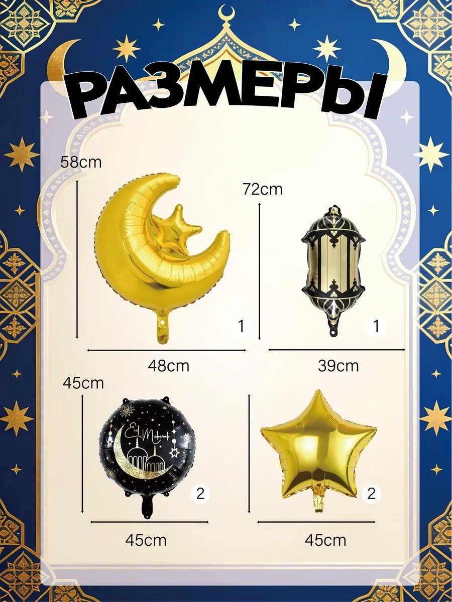 Шарики воздушные на рамадан послужат замечательным декором для дома Украсят любой дом и подарят ощущение праздника всей семье В наборе 6 штук.