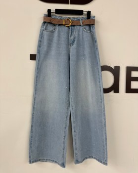 Джинсы широкие палаццо со стразами