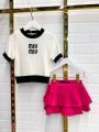 Костюм футболка машинная вязка юбка-шорты плисе.