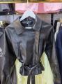Элегантная женская куртка из экокожи чрного цвета Стильный дизайн с поясом, подчркивающим талию, и аккуратным воротником Идеальный выбор для создания модного образа в прохладную погоду Практичная и долговечная станет базовой вещью в вашем гардеробе.