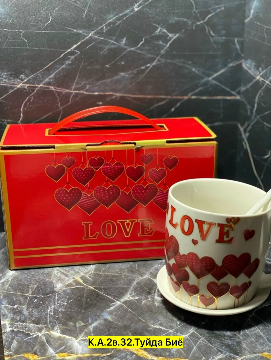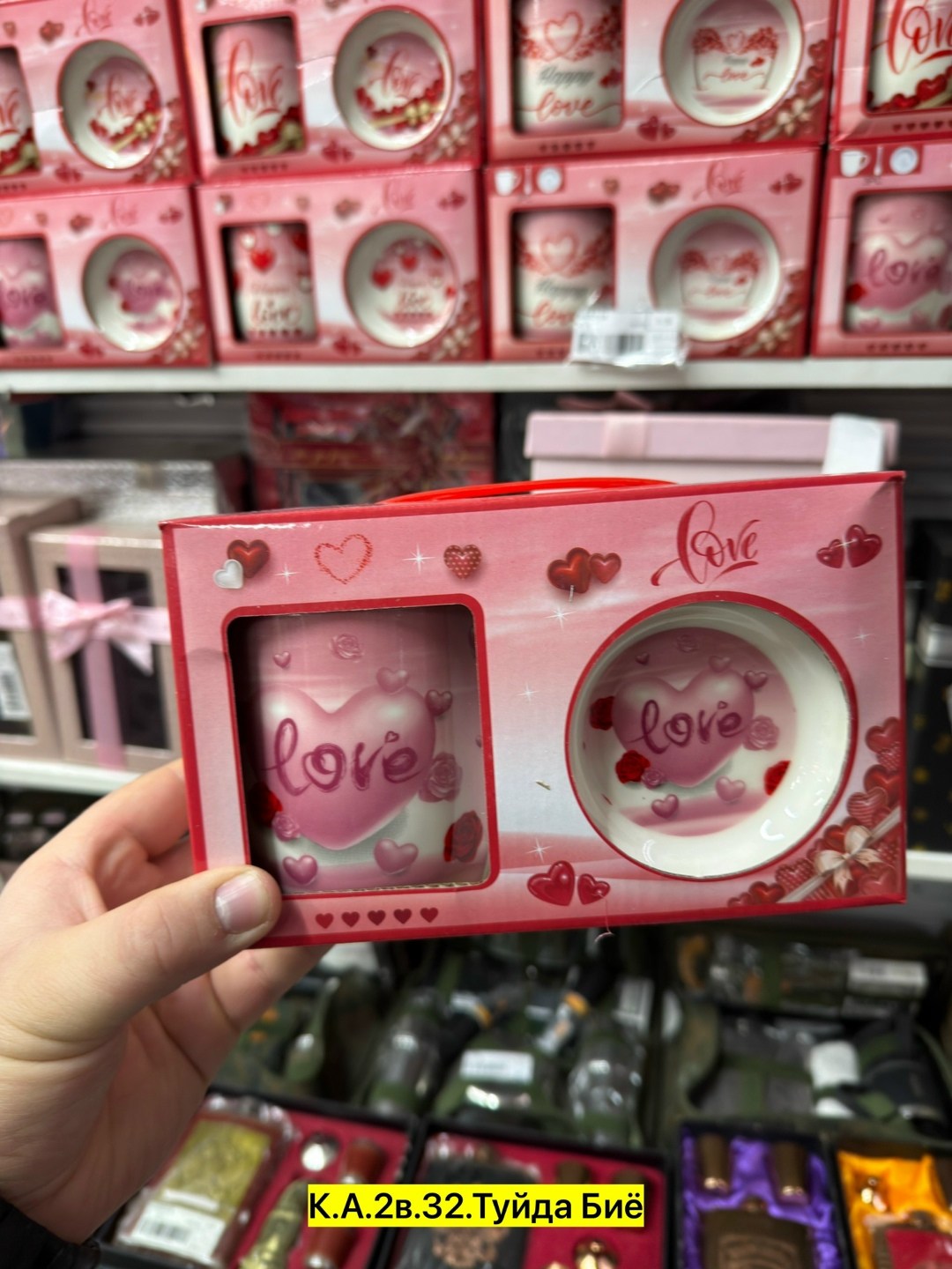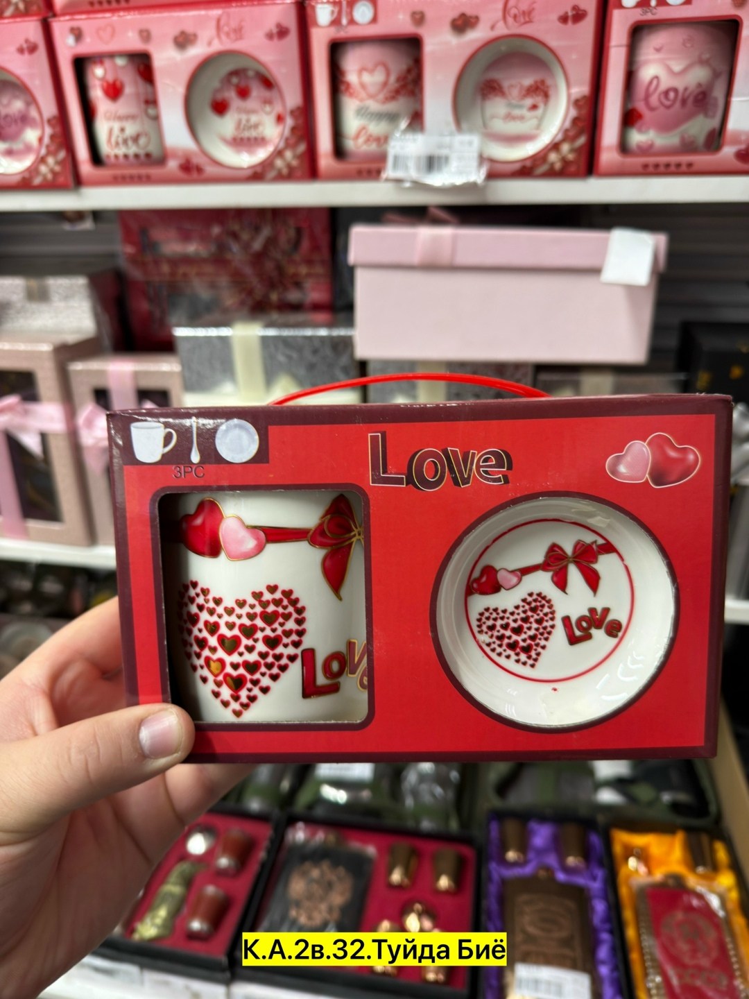 Композиция с сердечками и надписью love делает набор.