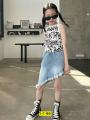 Топ с графичным принтом в черно белой гамме.