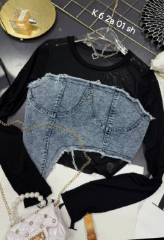 Первого взгляда Лонгслив с сеткой станет отличным дополнением твоего гардероба Сочетай с джинсами, юбкой, леггинсами, создавая стильные образы Не упусти возможность выглядеть модно с джинсовой моделью с сеткой!.