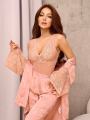 Костюм 3в-1 Боди, трендовые брюки с карманами кимоно с акцентом на нежное кружево.