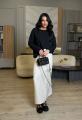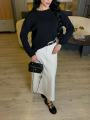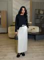 Юбка мягко струится по фигуре, создавая аккуратный вытянутый силуэт Средняя длина, легкая, приятная ткань с красивым падением Спереди аккуратные складки и функциональные карманы В комплекте стильный коричневый ремень с овальной пряжкой, который подчркивает талию.