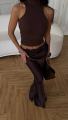 Эффектная макси-юбка с сатиновым блеском и кружевным поясом сидит женственно и стройнит силуэт.