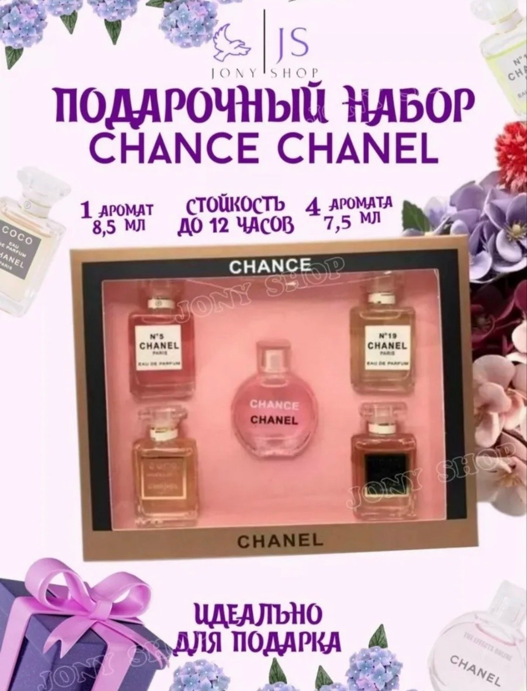 Подарочный набор духов - миниатюр chanel 5в1.