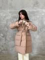 Объмный силуэт с акцентом на талию (пояс в комплекте).