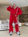 В комплекте спортивные брюки, укороченное худи с капюшоном.