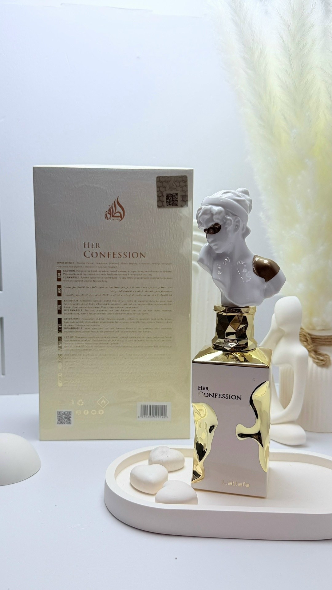 Lattafa her confession (2024) изысканный женский восточно-цветочный аромат, сочетающий теплоту корицы, таинственность ладана и сладость ванили Это стойкая парфюмерная вода (100 мл), созданная для уверенных натур, идеально подходит для вечера благодаря пряным нотам и чувственному шлейфу.