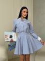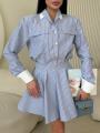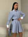 Стильный комплект с акцентом на женственный силуэт и аккуратные детали Рубашка свободного кроя с выразительными манжетами и декоративными клапанами придат образу элегантность, а мини-юбка с высокой посадкой подчркивает талию и красиво раскрывается при движении.
