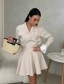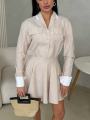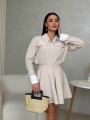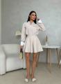 Стильный комплект с акцентом на женственный силуэт и аккуратные детали Рубашка свободного кроя с выразительными манжетами и декоративными клапанами придат образу элегантность, а мини-юбка с высокой посадкой подчркивает талию и красиво раскрывается при движении.