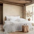 Постельное белье евро комплект с рюшами Изготовленный из 100 вареного хлопка Классическая простыня, наволочка на клапане и пододеяльник на пуговицах обеспечивают удобство использования.