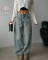 Эти джинсы багги must-have для тех, кто ценит комфорт и уличный стиль Модель выполнена из плотного денима светло-голубого оттенка с лгким винтажным эффектом.