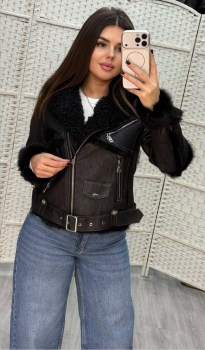 Модная комбинированная дубленка из премиального класса и натурального меха кролика.