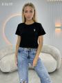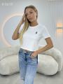 Стильные укороченный футболка с вышивкой поло.