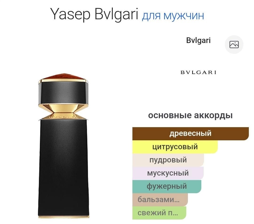 Yasep верхние ноты: сицилийский мандарин и сычуанский перец; средние ноты: сандал и кедр; базовые ноты: мускус, амирис и ветивер.