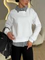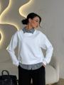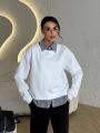 Уютный и стильный свитшот с эффектом многослойности Дизайн 2 в 1 с вшитым воротником и нижним краем рубашки избавляет от необходимости подбирать вещи и создает аккуратный, собранный образ за одно мгновение.