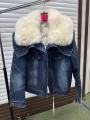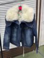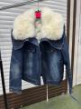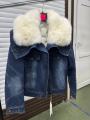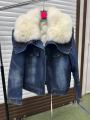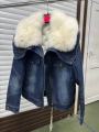 Джинсовая куртка мех песец, утепленная, длина 60 см.
