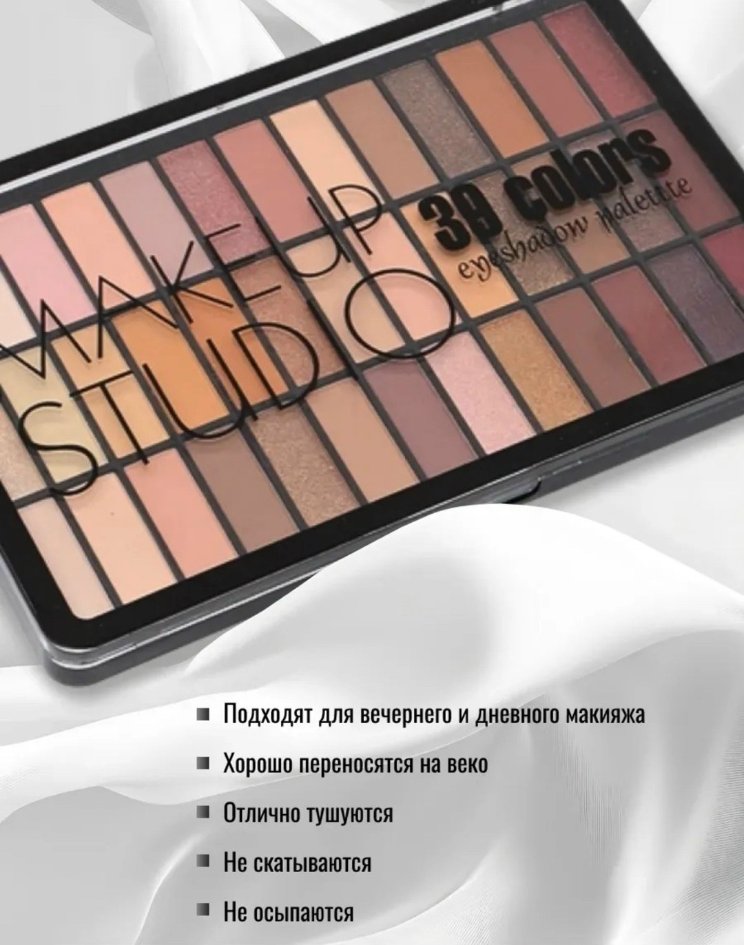 Создайте идеальный макияж с палеткой теней bonu make up studio 39 colors eyeshadow palette Эта палетка включает 39 тщательно подобранных оттенков, которые помогут вам легко создать как сдержанный дневной, так и насыщенный вечерний макияж Тени универсальны и подходят для любых жизненных ситуаций, от повседневного до праздничного образа.