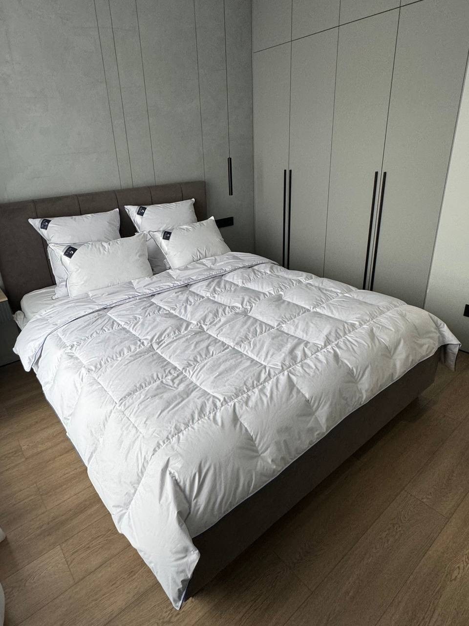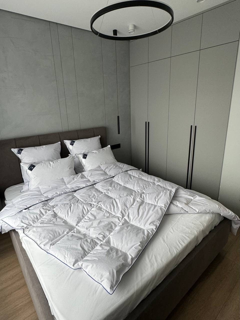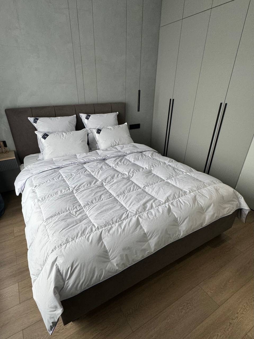 Внутренняя камера - пуховое перо Наполнитель одеяла: 100 серый гусиный пух.