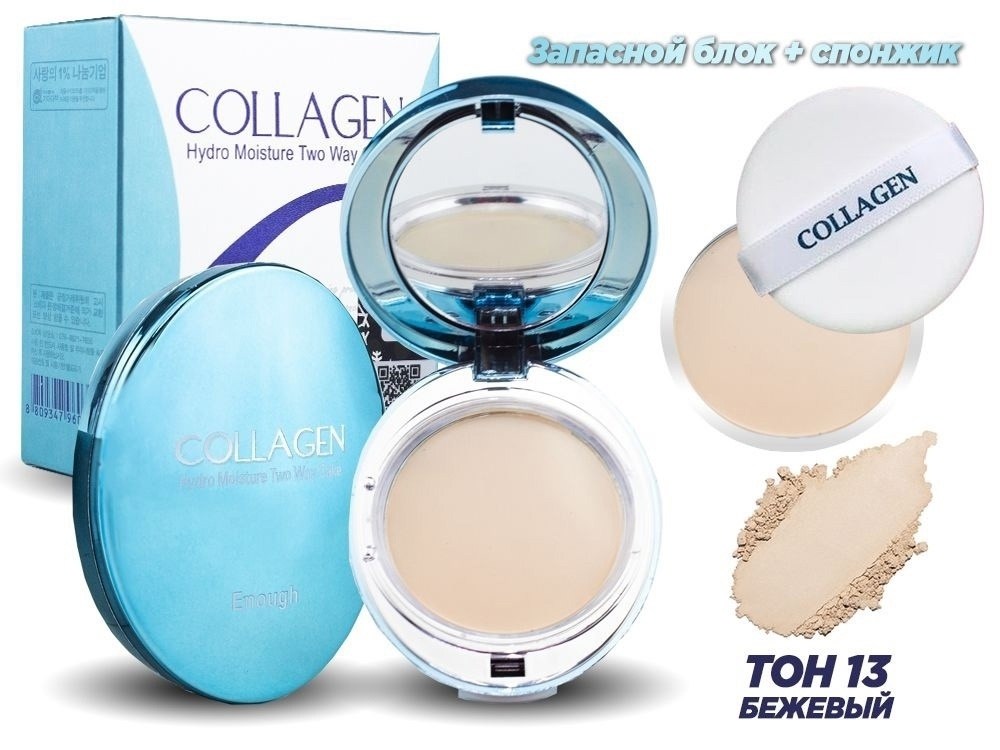 (копия) enough пудра для лица увлажняющая с коллагеном с запасным блоком тон 13 collagen hydro moisture two way cake spf 25/pa (13г) 13 тон.