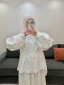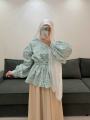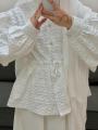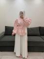 Верх выполнен из жаккардовой тканьи с утончнной фактурой смотрится благородно и аккуратно, держит форму, при этом остатся лгким и комфортным Свободный крой с объмными рукавами и аккуратной утяжкой подчркивает женственность образа.