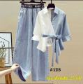 Женский комплект из брюк и рубашки с бантиком.