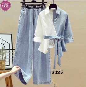 Женский комплект из брюк и рубашки с бантиком.