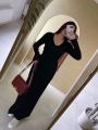 Элегантное трикотажное платье Фактура в рубчик подчркивает фигуру, v-образный вырез добавляет женственности, длинные рукава создают утончнный силуэт В комплекте тонкий пояс на талии Идеально для стильных повседневных образов и выходов в свет.