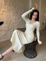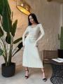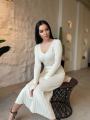 Элегантное трикотажное платье Фактура в рубчик подчркивает фигуру, v-образный вырез добавляет женственности, длинные рукава создают утончнный силуэт В комплекте тонкий пояс на талии Идеально для стильных повседневных образов и выходов в свет.