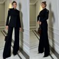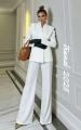 Приталенный пиджак с крыльями брюки клеш.