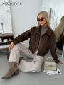 Стильная женская замшевая курточка выполнена из качественного материала, визуально напоминающего натуральную замшу.