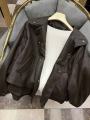 Куртка выполнена из высококачественной эко-кожи, которая выглядит и ощущается как натуральная.