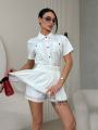 Стильный костюм в корейскеи стиле Рубашка и поиссированная короткая юбка.