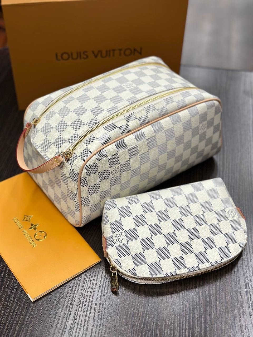 В комплект фирменный и пыльник двойной коробка.