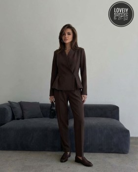 Элегантная костюм двойка жакет на запах с поясом штаны.