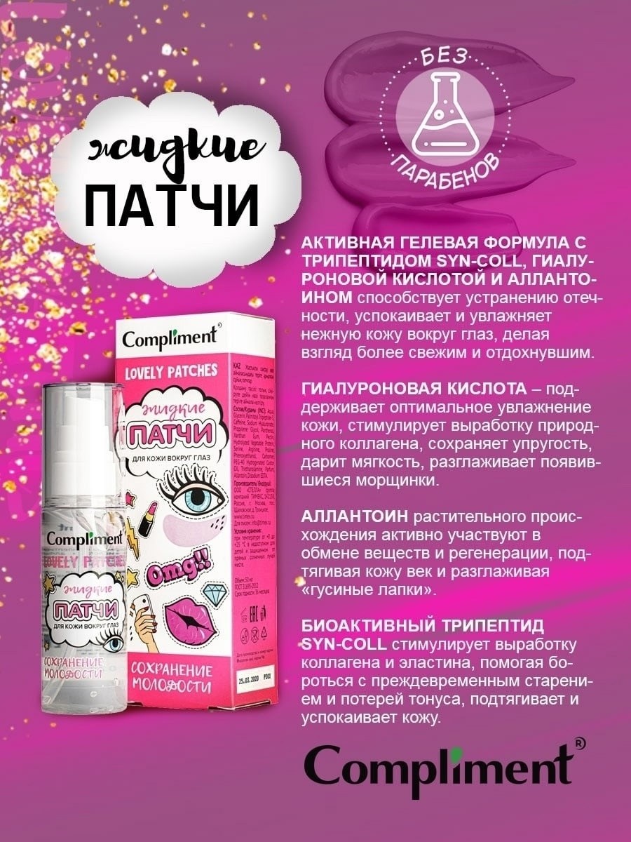 Compliment жидкие патчи для кожи вокруг глаз сохранение молодости 50 мл.