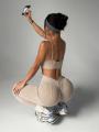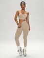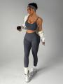 Топ со съемными чашечками и лосины с завышенной талией.