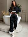 Чрная ткань с нежным цветочным принтом и контрастным кружевом создат изящный силуэт и подчркивает талию Свободные брюки на резинке и топ максимум комфорта и стиля в одном образе.