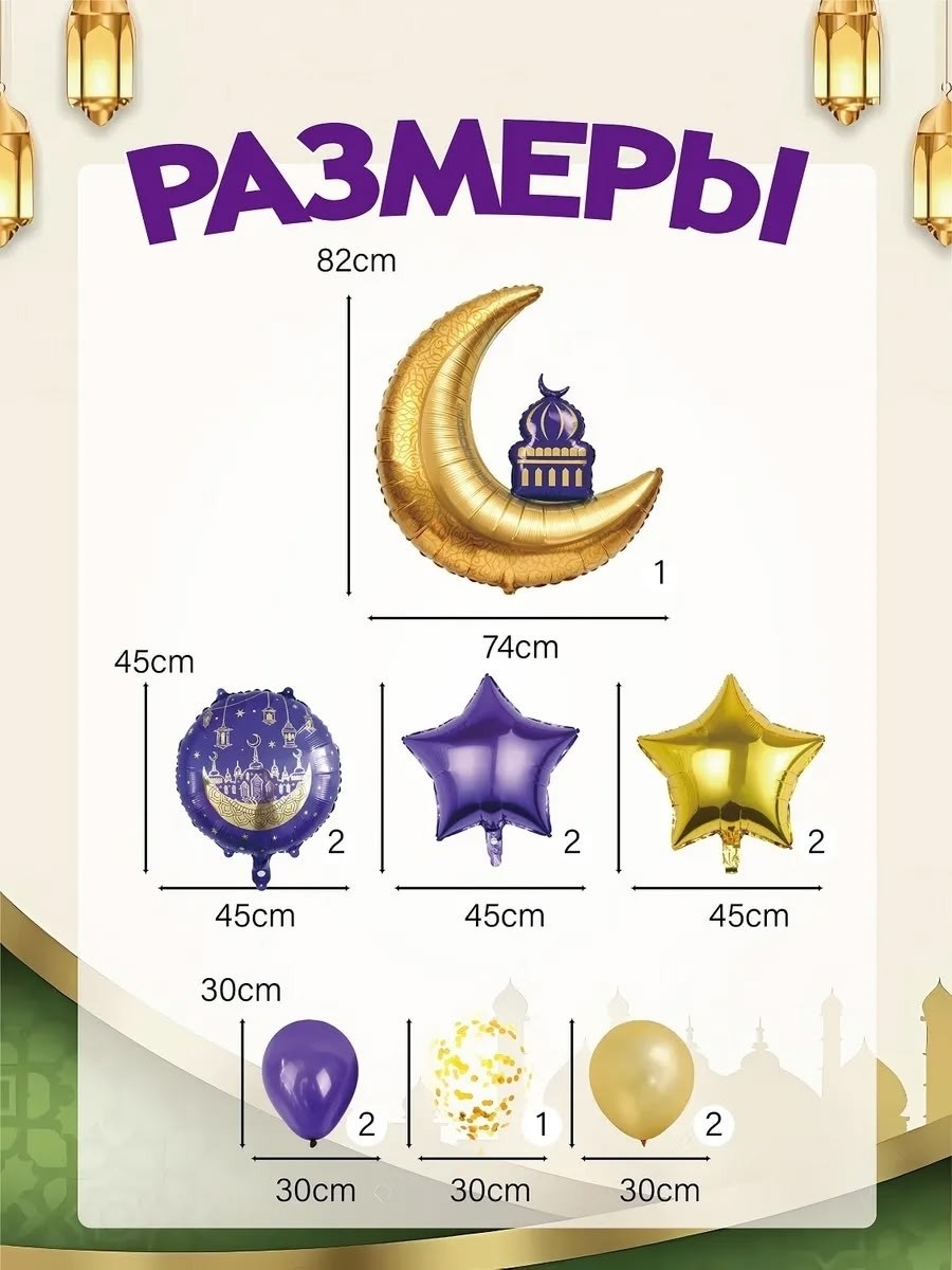 Шарики воздушные на рамадан послужат замечательным декором для дома Украсят любой дом и подарят ощущение праздника всей семье В наборе 13 штук.