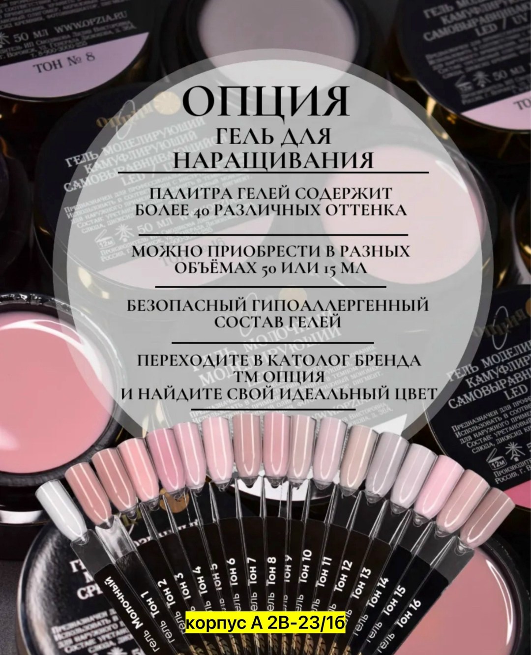 Опция гель для наращивания ногтей тон 16 50 мл.